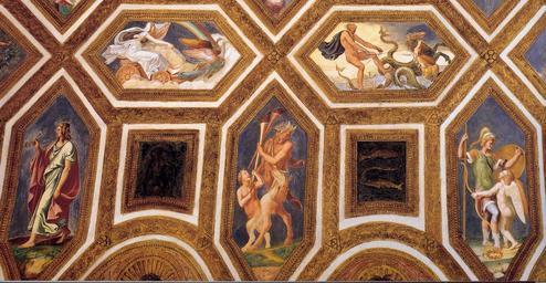 | Keywords: Giulio Romano - Ceiling decoration (detail) - WGA09591.jpg Artwork Creator Giulio Romano Ceiling decoration between 1527 1528 Fresco Institution Camera dei Venti Palazzo del Tè Mantua object history credit line accession number WGA link 9591 http //www wga hu/art/g/giulio/1pala_te/z_other/2venti2 jpg http //www wga hu/html/g/giulio/1pala_te/z_other/2venti2 html PD-old-100 painting mythological Italian 1501-1550 Frescos by Giulio Romano Camera dei Venti Palazzo del Tè Mantua 16th-century paintings WGA form painting WGA type mythological WGA School Italian WGA time period 1501-1550 |