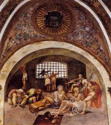 | Keywords: Giulio Romano - The Prisoners - WGA09594.jpg Artwork Creator Giulio Romano other date between 1527 1528 Fresco Camera dei Venti Palazzo del Tè Mantua East wall object history credit line accession number WGA link 9594 http //www wga hu/art/g/giulio/1pala_te/z_other/2venti5 jpg http //www wga hu/html/g/giulio/1pala_te/z_other/2venti5 html PD-old-100 painting mythological Italian 1501-1550 Frescos by Giulio Romano Camera dei Venti Palazzo del Tè Mantua Paintings in Mantua Torture in art Prisons in art 1520s paintings from Italy 1520s frescos WGA form painting WGA type mythological WGA School Italian WGA time period 1501-1550 |
