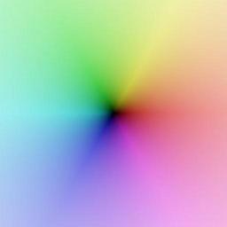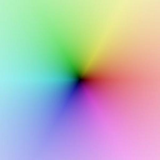 | Keywords: Gjl-cmap-5-0,05-1-0,333-0.jpg A color map illustrating Visualising Complex Functions Own 2008-03-25 Georg-Johann Lay The values indexed s saturation control the transition saturated colors white resp gray scale i e intermediate values infinity The values indexed h value/valenz control the transition black bright i e zero nonzero Parameter a controls where the transition takes place a is just the radius of the circle dividing the two regions dark/bright saturated/gray etc Parameter b controls how sharp the transition is b small soft b large sharp The following images all show the range -10 10×-10 10<math>i</math> and use <math>a_s 5</math> radius of rainbow and <math>a_v 1</math> radius of black disc Gallery <gallery> Image Gjl-cmap-5-10-1-10-0 jpg <math>b_s b_v 10</math> Image Gjl-cmap-5-1-1-1-0 jpg <math>b_s b_v 1</math> Image Gjl-cmap-5-0 05-1-0 333-0 jpg <math>b_s 0 05 b_v 1/3</math> Image Gjl-cmap-5-0 05-1-0 333-1 jpg <math>b_s 0 05 b_v 1/3</math><br/>Roles of S and V interchanged </gallery> See also Visualising Complex Functions Complex plots color maps |
