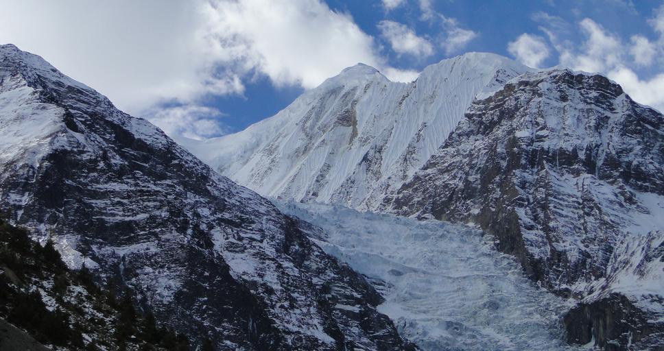 Keywords: glacier manang outdoor landscape mountain arete ridge mountainside mountain ridge mountain peak hill crag cliff foothill waterfall water Glacier moving into Gangapurna Glacial Lake. Glacier moving into Gangapurna Glacial Lake.
