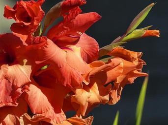 Keywords: gladiolus sword flower iridaceae red green bloom nature flora summer flower close-up plant garden