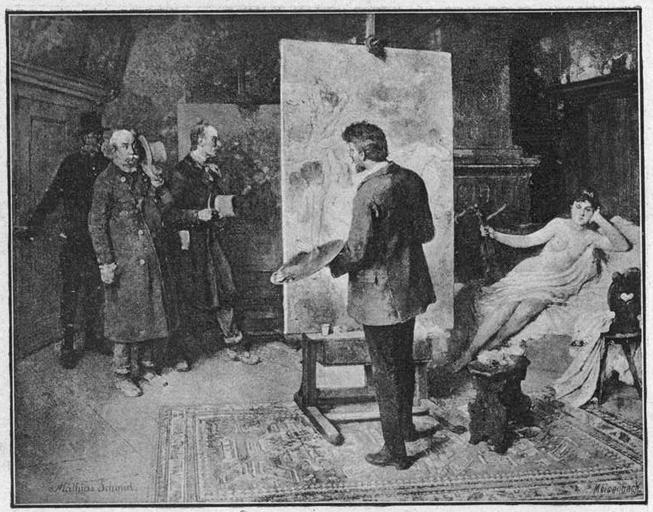 Keywords: Glaspalast 1888 128.jpg 127 129 Mathias Schmid Feuerbeschau Glaspalast München 1888 Mathias Schmid Studios in art Painters at work Artist and model in art