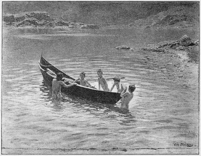 Keywords: Glaspalast München 1890 080.jpg 079 081 O Sinding Im Hochsommer Glaspalast München 1890 Otto Sinding Bathing in art Nude boys in art Boats in art