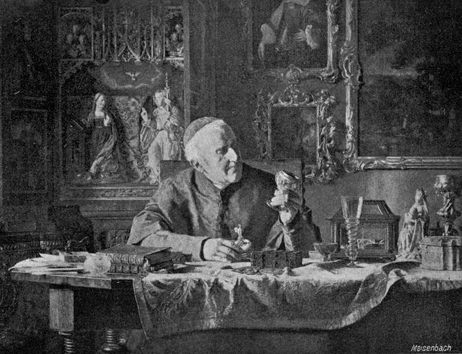 Keywords: Glaspalast München 1891 012.jpg 011 013 August Holmberg Der Sammler Glaspalast München 1891 August Holmberg Portraits of art collectors Priests in art Anti-clerical art