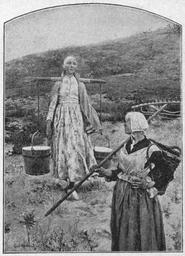 Keywords: Glaspalast München 1891 076b.jpg 076a 077 Creator Gari Melchers In den Dünen Dans le dunes Glaspalast München 1891 Gari Melchers Milkmaids in art Windmills in art People under yoke in art Carrying women in art Buckets in art