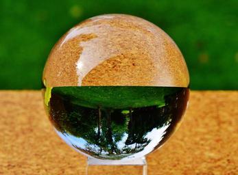 Keywords: glass ball ball mirroring meadow trees flowers plant transparent about
