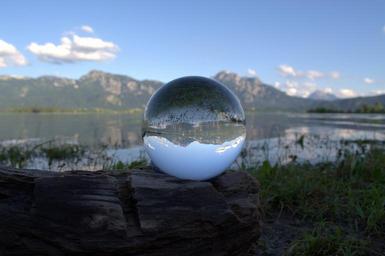 Keywords: glass ball globe image ball alpine panorama lake forggensee outlook landscape