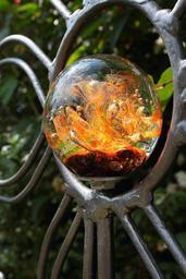 Keywords: glass ball metal frame gartendeko yellow pattern color ball garden farbenspiel decoration