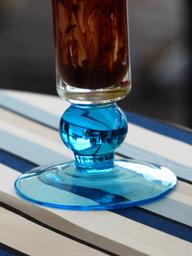 Keywords: glass blue ice cream sundae glass base foot floor stand