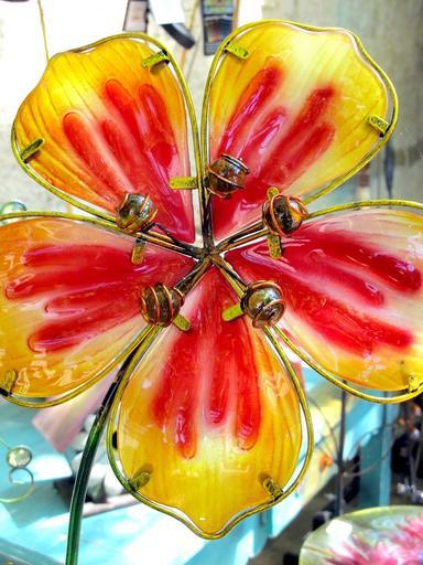 Keywords: glass flower red yellow craftsmanship crafted artistic artwork decorative colorful stained glass petals
