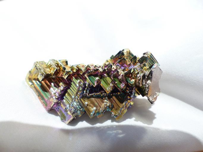 Keywords: glazed includes mineral iridescent bismuth bismuth crystal bismuth crystal level bred aesthetic staircase shaped crystal structure color colorful metallic metallic gloss shiny synthetic synthetic bismutkristall tint spectrum color spectrum chemical element element brittle coarse crystalline metal semi metal rhomboedrische crystal structure rhomboedrisch