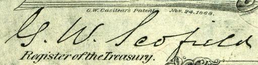 | Keywords: Glenni William Scofield (Engraved Signature).jpg en Engraved signature on U S Bank Notes “ paper currency 2012-12-26 www nationalcurrencyfoundation org Bureau of Engraving and Printing Smithsonian Institution PD-USGov Engravings Signatures on United States Banknotes Smithsonian Institution Currency National Numismatic Collection Banknote signatures scanned by User Godot13 | ||||