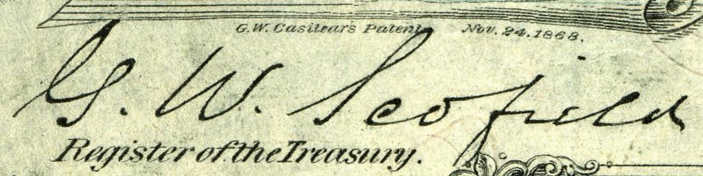 Keywords: Glenni William Scofield (Engraved Signature).jpg en Engraved signature on U S Bank Notes “ paper currency 2012-12-26 www nationalcurrencyfoundation org Bureau of Engraving and Printing Smithsonian Institution PD-USGov Engravings Signatures on United States Banknotes Smithsonian Institution Currency National Numismatic Collection Banknote signatures scanned by User Godot13 |