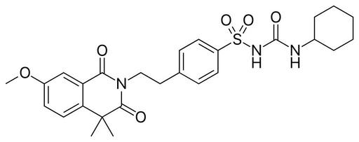| Keywords: Gliquidone.svg validSVG Skeletal formula of gliquidone trade name Glurenorm ” a second-generation sulfonylurea which is used in the management of diabetes mellitus type 2 Created using http //www acdlabs com/download/chemsk html ACD/ChemSketch 10 0 http //www inkscape org Inkscape and http //www vim org vim Own Fvasconcellos 2008-08-02 Cyclohexyl compounds Diketones Glutarimides Isoquinolinones Methyl ethers N N-disubstituted primary amides Phenethylamines Sulfonylurea antidiabetics | ||||