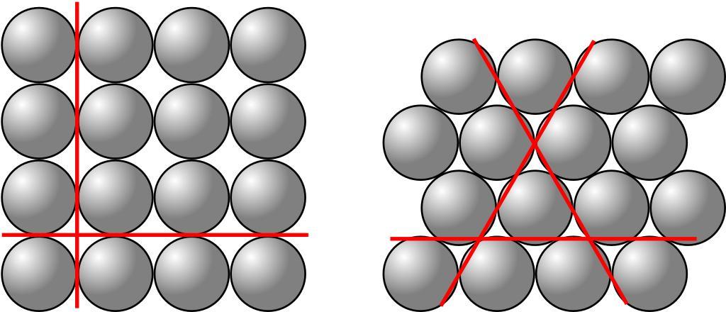 Keywords: Glissement plan selon organisation.svg en The crystal lattice determines the esay slip directions The left crystal only shows two dense directions whereas the right crystal shows three dense directions The right lattice is thus intrinsically more ductile fr Le réseau cristallin détermine les « directions de glissement facile » Le cristal de gauche ne présente que deux directions denses alors que le cristal de droite en présente trois Le réseau de droite est donc intrinsèquement plus ductile own Cdang 2009-04-15 File Modes glissement cristal 2d svg Created with Inkscape Plastic deformation Crystallography |