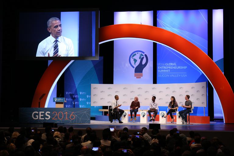 Keywords: global entrepreneurship summit globalentrepreneurshipsummit ges 2016 ges2016 silicon valley siliconvalley entrepreneurship innovators palo alto paloalto stanford university stanforduniversity california President Obama, Facebook CEO Mark Zuckerberg, and three entrepreneurs - Mai Medhat, Jean Bosco Nzeyimana, and Mariana Costa Checa - sit on a panel at the Global Entrepreneurship Summit, held on June 22-24, 2016 at Stanford University in Palo Alto, California. [GES Photo/Public Domain] President Obama, Facebook CEO Mark Zuckerberg, and three entrepreneurs - Mai Medhat, Jean Bosco Nzeyimana, and Mariana Costa Checa - sit on a panel at the Global Entrepreneurship Summit, held on June 22-24, 2016 at Stanford University in Palo Alto, California. [GES Photo/Public Domain]
