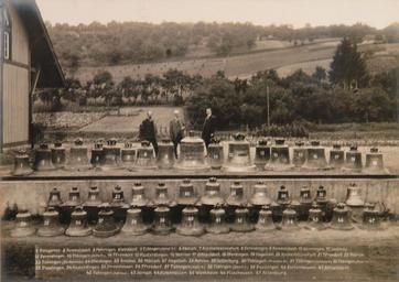 | Keywords: Glocken aus dem Kreis Tübingen, Erster Weltkrieg.JPG de Glocken aus dem Kreis Tübingen Erster Weltkrieg Zu Beginn des Ersten Weltkriegs mussten die Kirchen in der Region ihre Glocken an sogenannten Glockensammelstellen abgeben 1 Rübgarten 2 Rommelsbach 3 Mähringen 4 Walddorf 5 Tübingen Spitalkirche 6 Häslach 7 Kirchentellinsfurt 8 Derendingen 9 Rommelsbach 10 Gönningen 11 Lustnau 12 Derendingen 13 Tübingen Stiftskirche 14 Pfrondorf 15 Kusterdingen 16 Nehren 17 Schlaitdorf 18 Oferdingen 19 Hagelloch 20 Kirchentellinsfurt Rathaus 21 Pfrondorf 22 Nehren 23 Tübingen Evangelisches Seminar 24 Oferdingen 25 Gniebel 26 Häslach 27 Hagelloch 28 Nehren 29 Jettenburg 30-32 Tübingen 33 Dußlingen 34 Kusterdingen 35 Immenhausen 36 Pfrondorf 37-38 Tübingen 39 Dußlingen 40 Dettenhausen 41 Schlaitdorf 42 Tübingen Rathaus 43 Dörnach 44 Sickenhausen 45 Wankheim 46 Pliezhausen 47 Altenburg Siehe auch http //www tuepedia de/wiki/Datei Glockensammelstelle jpg Ahnliches Foto ohne die drei Herren 1914 1918 Stadtmuseum Tübingen Vor mehr als 70 Jahren verstorben other versions PD-old-70-1923 Tübingen in World War I Uploaded with UploadWizard 1914 in Tübingen |