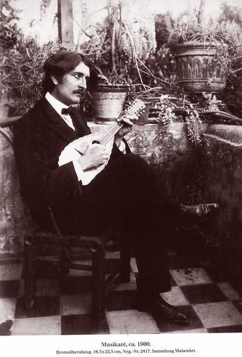 | Keywords: Gloeden, Wilhelm von (1856-1931) - n. 2417 - Domenico Lo Giudice.jpg Wilhelm von Gloeden 1856-1931 Gentiluomo che suona il mandolino sulla scalinata della casa di Gloeden a Taormina Numero di catalogo 2417 Un diverso ritratto del medesimo soggetto è stato identificato per la prima volta come quello del cugino il fotografo Wilhelm von Plüschow 1852-1930 nel 1997 nel catalogo antiquario n 5 di Serge Planteux al numero 193 e da allora accettato come tale Tuttavia il Metropolitan Museum di New York http //www metmuseum org/collections/search-the-collections/190015646 ha pubblicato sul suo sito una versione della presente foto che sul retro riporta una dedica che lo identifica come Mico Lo Giudice-Berbiredolu il mago del mandolino Dal Direttore del Conservatorio di Milano Mario Bolognari autore di I ragazzi di von Gloeden Poetiche omosessuali e rappresentazioni dell'erotismo siciliano tra Ottocento e Novecento Reggio Calabria 2012 lo ha identificato in Domenico detto Mico Lo Giudice 1871-1942 soprannominato Barbareddu o Barbireddu Barbiredolu è visibilmente una cattiva lettura di un du manoscritto come olu soprannome che i suoi attuali discendenti a Taormina hanno ereditato Si tratta pertanto d'un personaggio reale e l'identificazione di questa foto come un suo ritratto ha le maggiori probabilità d'essere quella giusta dato che è improbabile che la foto d'un personaggio celebre sia spacciata per quella d'un personaggio non conosciuto mentre il contrario è più facile Questo personaggio appare anche nell'immagine storica pubblicata sul sito dell'Hotel Schuler di Taormina http //www hotelvillaschuler com/imgcms/history5 jpg qui Wilhelm von Gloeden 1856-1931 Portrait of a gentleman playing a mandolin on the staircase of Gloeden's villa in Taormina Catalogue number 2417 A portrait of the same sitter was first recognised as showing Gloeden's cousin the photographer Wilhelm von Plüschow 1852-1930 in 1997 in the antiquarian catalogue 5 by Serge Planteux item 193 and since accepted However The Metropolitan Museum in New York http //www metmuseum org/collections/search-the-collections/190015646 published online another portrait of the same sitter playing a mandolin inscribed on the reverse with a dedication calling him Mico Lo Giudice-Berbiredolu the magician of mandolin From the director of Milan's Conservatory Barbiredolu clearly comes from a misreading of an handwritten du as olu Mario Bolognari who wrote I ragazzi di von Gloeden Poetiche omosessuali e rappresentazioni dell'erotismo siciliano tra Ottocento e Novecento Reggio Calabria 2012 recognized him as Domenico called Mico Lo Giudice 1871-1942 dubbed Barbareddu The little barbarian or Barbireddu the little barber a nickname his grand-grand-children in Taormina still bear today Since this is a really existing person this identification should be considered the most likely one since no-one would mis-give a picture of a famous sitter for the one of an unkwnown one whereas the reverse is easier The sitter also appears in the historical picture published in the website of Hotel Schuler in Taormina http //www hotelvillaschuler com/imgcms/history5 jpg here Pohlmann Ulrich editor Wilhelm von Gloeden - Sehnsucht nach Arkadien Nishen Berlin 1987 p 76 ~ 1900 Creator Wilhelm von Gloeden PD-old-auto-1923 1931 <gallery> Image Gloeden _Wilhelm_von_ 1856-1931 _-_n _2415_-_Domenico_Lo_Giudice jpg 2415 File Gloeden Wilhelm von 1856-1931 - n 2417 - Domenico Lo Giudice jpg 2417 </gallery> Men and boys by Wilhelm von Gloeden 2417 Mandolin players in art 1900 Historical images of people of Taormina Barbireddu Domenico Lo Giudice aka Barbireddu |