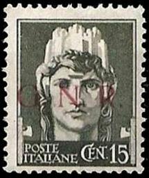 Keywords: GNRItaly1943Michel3.jpg ru Почтовая ма ка выпущенная ациональной еспубликанской гва дией Итальянской социальной еспублики адпечатка на ма ке 1929 года personal collection Author 1929 / 1943 1943 stamps of Italy PD-old