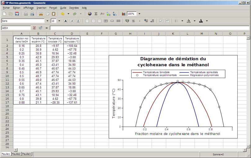 Keywords: Gnumeric tutorial for chemists interface 2-fr.png Created with Gnumeric Screenshot of the french version of Gnumeric 1 10 4 running on Windows XP showing the software interface Intended for use on the French Graphic Lab Gnumeric tutorial for chemists Experimental data shown in the table come from one of my experiments on non-miscible solvents separation cyclohexane in methanol Capture d'écran de Gnumeric 1 10 4 en français sous Windows XP présentant l'interface du logiciel Conçu pour un didacticiel sur l ™utilisation de Gnumeric par les chimistes Les données expérimentales présentées dans le tableau sont issues d'une de mes expériences sur la démixtion du cyclohexane dans le méthanol own 2010-06-06 Tachymètre <span class signature-talk >talk</span> free screenshot GPL Other data shown on the screenshot are licensed under these conditions Tachymètre Screenshots for Gnumeric tutorials