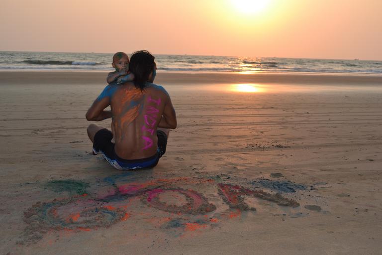 Keywords: goa summer vacation nature ocean beach sea father son sunset