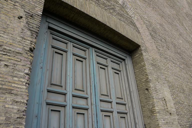 Keywords: goal door oblique old input hinged door atmospheric frame blue lapsed stone wall stone wall stones ruin old sanja background masonry building