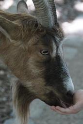 Keywords: goat billy goat fence domestic goat farm zoo livestock enclosure brown petting zoo feed feeding hand stroke child fond of animals eat child's hand tame food intake food friendly
