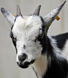 Keywords: goat kid domestic goat cute dwarf goat animal horns nature young animal animal world small goat black and white black and white goat black and white young
