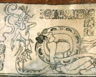 | Keywords: God K K'awiil.jpg en Woman entwined by God K's K'awiil's serpent leg Justin Kerr The Maya Vase Book Vol 6 Kerr Associates 2001 unknown Maya artist Classic period PD-old Details of Maya painted pottery K'awiil People with snakes in art ImageNote 1 144 129 169 113 401 321 2 EN This goddess is maybe Xk'ik a Maya-Quichean Deity from the Popol Vuh <br/>ES Ella puede ser la diosa quiché Ixquic personaje del Popol Vuh ImageNoteEnd 1 | ||||