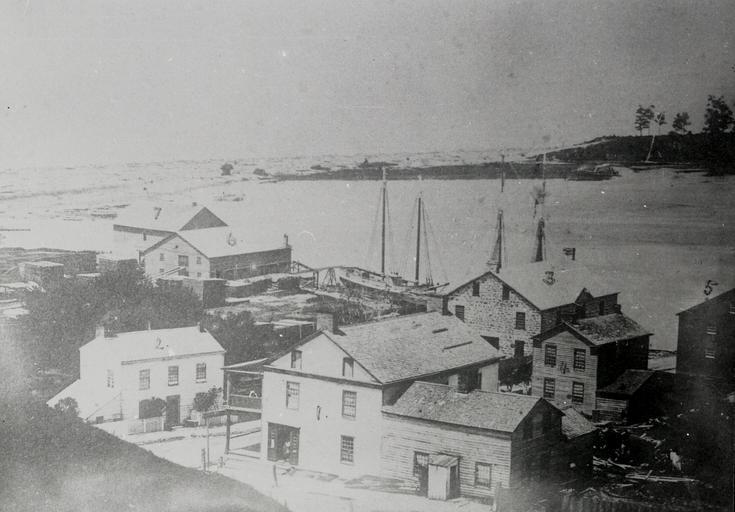 Keywords: goderich harbours lake huron blackandwhite outdoor black and white Description: Black and white photograph of Goderich Harbour buildings -- buildings include; 1. John Craig's Hotel; 2. Tom Kneeshaw's House; 3. Seymour's Warehouse; 4. Jas. Conneley's house; 5. Corner of Buffalo & L. Huron Elevator; 6. Chris Columbus Crabb's Warehouse; 7. T.B. Van Every's & Geo Rumball's Fridge House; 8. Lumber piles from John Mcdonald's Mill Object ID : X986.0109.001e Order a higher-quality version of this item by contacting the Huron County Museum (fee applies). Description: Black and white photograph of Goderich Harbour buildings -- buildings include; 1. John Craig's Hotel; 2. Tom Kneeshaw's House; 3. Seymour's Warehouse; 4. Jas. Conneley's house; 5. Corner of Buffalo & L. Huron Elevator; 6. Chris Columbus Crabb's Warehouse; 7. T.B. Van Every's & Geo Rumball's Fridge House; 8. Lumber piles from John Mcdonald's Mill Object ID : X986.0109.001e Order a higher-quality version of this item by contacting the Huron County Museum (fee applies). |