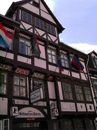 | Keywords: Goe-Kurzestr-SchwarzerBär.JPG Description Göttingen Fachwerkhaus Zum Schwarzen Bären Kurze Str Photographer Longbow4u photo taken myself 27 05 2005 Licence Longbow4u Schwarzer Bär in Göttingen Photographs of flags of student fraternities Taken with Lumicron 626z3 |