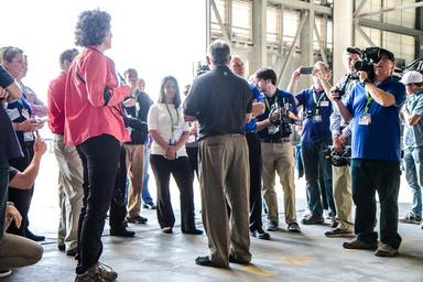 | Keywords: goes-r goesr countdowntolaunch roadtolaunch launch workshop launchworkshop broadcast meteorologists broadcastmeteorologists next generation nextgeneration satellite weather satellite weathersatellite noaa nasa ksc vab noaa satellites noaasatellites noaa satellite and information service noaasatelliteandinformationservice outdoor Select broadcast meteorologists were invited to a special GOES-R Launch Workshop, held at Kennedy Space Center November 16-19, 2016. The GOES-R Workshop provided a unique opportunity to bring together broadcast meteorologists from around the nation to engage with professionals from NOAA and NASA on the launch of this revolutionary satellite. On November 17, workshop participants were given a tour of the the Vehicle Assembly Building, or VAB, at NASA's Kennedy Space Center.The building was designed to assemble large space vehicles, such as the massive Saturn V and the Space Shuttle. GOES-R is scheduled to launch aboard an Atlas V rocket on November 19 from Cape Canaveral, Florida. Photo credit: NOAA/NASA For the latest on the GOES-R launch, visit www.nesdis.noaa.gov/GOES-R-Launch Select broadcast meteorologists were invited to a special GOES-R Launch Workshop, held at Kennedy Space Center November 16-19, 2016. The GOES-R Workshop provided a unique opportunity to bring together broadcast meteorologists from around the nation to engage with professionals from NOAA and NASA on the launch of this revolutionary satellite. On November 17, workshop participants were given a tour of the the Vehicle Assembly Building, or VAB, at NASA's Kennedy Space Center.The building was designed to assemble large space vehicles, such as the massive Saturn V and the Space Shuttle. GOES-R is scheduled to launch aboard an Atlas V rocket on November 19 from Cape Canaveral, Florida. Photo credit: NOAA/NASA For the latest on the GOES-R launch, visit www.nesdis.noaa.gov/GOES-R-Launch |