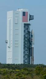 | Keywords: noaa nasa ksc lauch next generation nextgeneration noaa satellites noaasatellites satellite weather satellite weathersatellite roadtolaunch countdowntolaunch spacecraft outdoor architecture building The United Launch Alliance Atlas V rocket and its GOES-R payload were moved to the launch pad on November 18, 2016 as preparations continue for Saturday’s launch from Space Launch Complex 41. The Atlas V is in its 541 configuration, which means it has the 5-meter-diameter payload fairing, four solid-fueled boosters and the Centaur upper stage is equipped with a single engine. The GOES-R launch window opens at 5:42 p.m. EST on November 19. Photo credit: NOAA/NASA For the latest on the GOES-R launch, visit www.nesdis.noaa.gov/GOES-R-Launch The United Launch Alliance Atlas V rocket and its GOES-R payload were moved to the launch pad on November 18, 2016 as preparations continue for Saturday’s launch from Space Launch Complex 41. The Atlas V is in its 541 configuration, which means it has the 5-meter-diameter payload fairing, four solid-fueled boosters and the Centaur upper stage is equipped with a single engine. The GOES-R launch window opens at 5:42 p.m. EST on November 19. Photo credit: NOAA/NASA For the latest on the GOES-R launch, visit www.nesdis.noaa.gov/GOES-R-Launch |