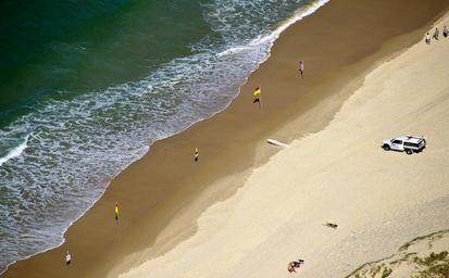 Keywords: gold coast beach sea ocean sand holidays swimmers life guard sun bather shoreline aerial queensland australia