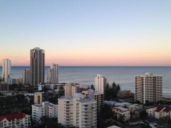 Keywords: gold coast city buildings skyscrapers skyline dusk queensland sunset