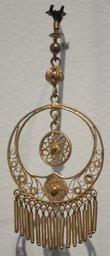 | Keywords: Gold plated silver earing from Morocco or Tunisia, late 19th-early 20th century.JPG en Gold plated silver earring from Morocco or Tunisia late 19th-early 20th century one of pair long-term loan to the Honolulu Museum of Art by Doris Duke Foundation for Islamic Art accession 90 82a-b own Hiart photo 2016 Metalwork in the Doris Duke Foundation for Islamic Art Art of Morocco Art of Tunisia Islamic metalwork in the Honolulu Museum of Art African metalwork in the Honolulu Museum of Art Earrings Cc-zero |