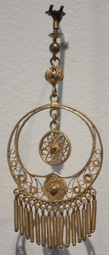 Keywords: Gold plated silver earing from Morocco or Tunisia, late 19th-early 20th century.JPG en Gold plated silver earring from Morocco or Tunisia late 19th-early 20th century one of pair long-term loan to the Honolulu Museum of Art by Doris Duke Foundation for Islamic Art accession 90 82a-b own Hiart photo 2016 Metalwork in the Doris Duke Foundation for Islamic Art Art of Morocco Art of Tunisia Islamic metalwork in the Honolulu Museum of Art African metalwork in the Honolulu Museum of Art Earrings Cc-zero |