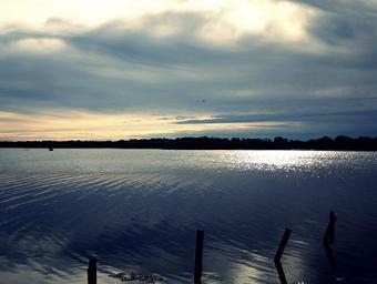Keywords: golden autumn nature lake sky clouds water landscape sunset field