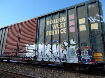 Keywords: goldenwestservice freight graffiti inhl inhale lk boxcar train freight car vehicle outdoor sign text