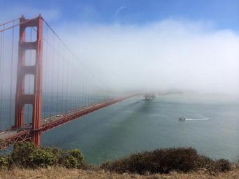 Keywords: golden gate bridge san francisco pacific coast usa fog early morning red bridge