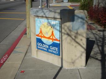 View Original:Golden Gate shopping district concrete bollard sign.jpg (2816x2112)
