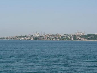 Keywords: Golden Horn Bosphorus 01.JPG View from a ferry coming from the Asian side towards Sarayburnu of Istanbul Visible is the Hagia Sophia and the Sultan Ahmed Mosque Own 2007-07 Gryffindor Views of the Bosphorus Views of Istanbul