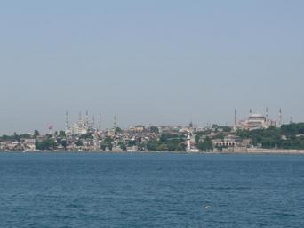 Keywords: Golden Horn Bosphorus 02.JPG View from a ferry coming from the Asian side towards Sarayburnu of Istanbul Visible is the Hagia Sophia and the Sultan Ahmed Mosque Own 2007-07 Gryffindor Views of the Bosphorus Views of Istanbul