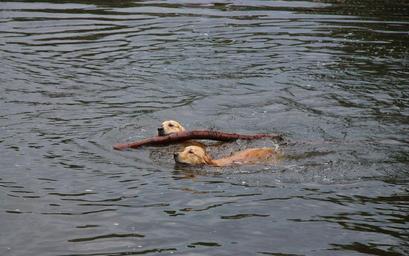 Keywords: golden retriever dog batons floor gassi water lake pond walk run leash