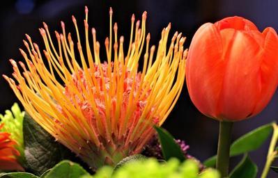 Keywords: golden spidermum flower tulip garden nature outdoors