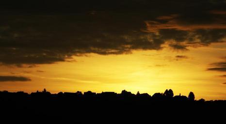 Keywords: golden sunset beautiful sky clouds golden rest atmospheric twilight romantic nature glow village silhouette town