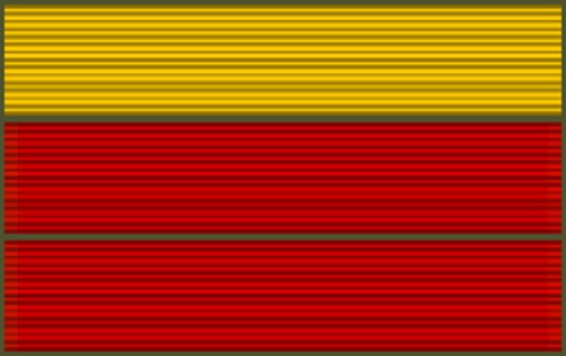 | Keywords: GoldenAndTwofoldRedLaces.png en Combat Injury Badge for wounds received in line of duty Composed of one golden and two red laces for that the bearer has been wounded thrice a severe wound golden lace and two non-lethal wounds red laces 2012-10-22 13 00 09 own George Serdechny Uploaded with UploadWizard Combat Injury Badge Red ribbons Yellow ribbons |