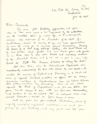 | Keywords: Goldenes Buch zum 70. Geburtstag August Bebel 1910 Seite 149.jpg Goldenes Buch zum 70 Geburtstag August Bebel 1910 Seite_ jpg 148 150 Glückwunschschreiben zum 70 Geburtstag von August Bebel Sozialistische Föderation Australasien August Bebel zum siebzigsten Geburtstag 22 Februar 1910 / mit einer Nachbemerkung von Ursula Herrmann Reprint des Unikats aus dem Zentralen Parteiarchiv der SED Dietz Verlag Berlin 1989 Lizenzausgabe Saur 1989 ISBN 3-598-07256-2 self scanned from own book 1910 Diverse PD-old-70-1923 Goldenes Buch zum 70 Geburtstag August Bebel 1910 |