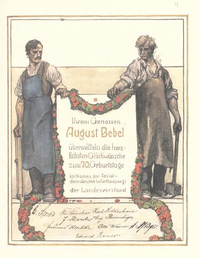 Keywords: Goldenes Buch zum 70. Geburtstag August Bebel 1910 Seite 037.jpg Goldenes Buch zum 70 Geburtstag August Bebel 1910 Seite_ jpg 036 038 Glückwunschschreiben zum 70 Geburtstag von August Bebel SPD-Landesvorstand Württemberg August Bebel zum siebzigsten Geburtstag 22 Februar 1910 / mit einer Nachbemerkung von Ursula Herrmann Reprint des Unikats aus dem Zentralen Parteiarchiv der SED Dietz Verlag Berlin 1989 Lizenzausgabe Saur 1989 ISBN 3-598-07256-2 self scanned from own book 1910 Diverse Goldenes Buch zum 70 Geburtstag August Bebel 1910 PD-old-70-1923 |