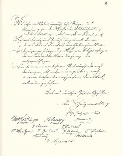 Keywords: Goldenes Buch zum 70. Geburtstag August Bebel 1910 Seite 073.jpg Goldenes Buch zum 70 Geburtstag August Bebel 1910 Seite_ jpg 072 074 Glückwunschschreiben zum 70 Geburtstag von August Bebel Hauptverwaltung des Verbandes deutscher Gastwirtsgehilfen August Bebel zum siebzigsten Geburtstag 22 Februar 1910 / mit einer Nachbemerkung von Ursula Herrmann Reprint des Unikats aus dem Zentralen Parteiarchiv der SED Dietz Verlag Berlin 1989 Lizenzausgabe Saur 1989 ISBN 3-598-07256-2 self scanned from own book 1910 Diverse Goldenes Buch zum 70 Geburtstag August Bebel 1910 PD-old-70-1923